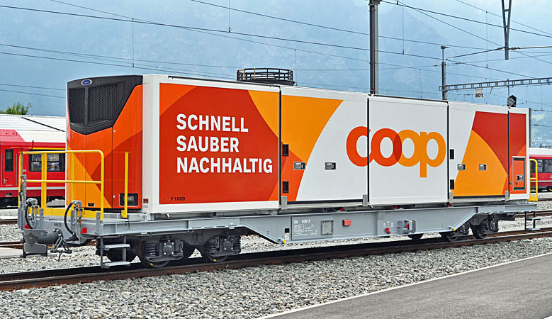 RhB Sb 65615 mit Klimacontainer "Coop"
