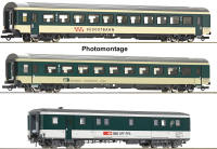 SBB 3-teiliges Set 1 IR 1617 EW-II-Wagen in grüner Lackierung mit Komfort Streifen Personenwagen mit Nichtraucher/Raucher-Unterteilung |