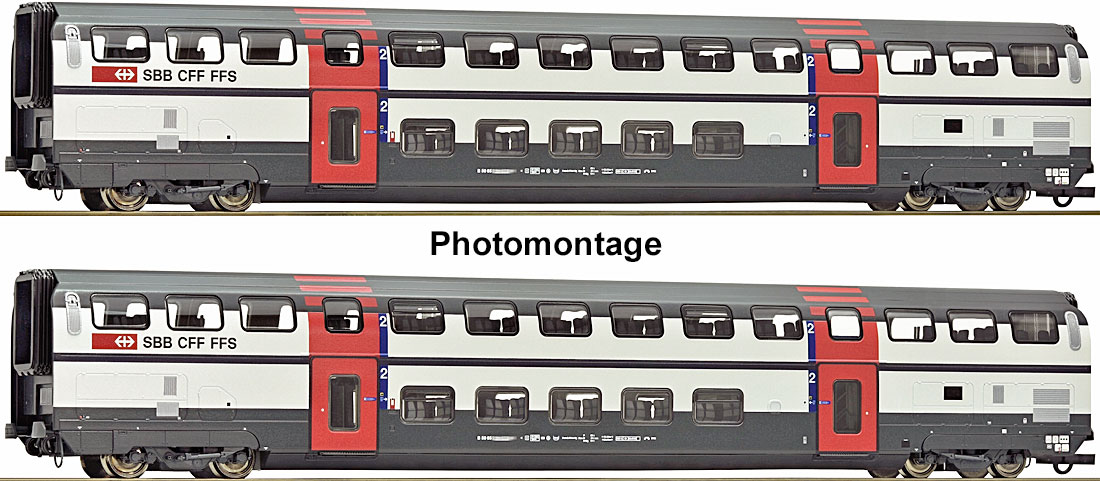 SBB Doppelstockwagen 2. Klasse 2-teiliges Set mit geänderter Betriebsnummer |