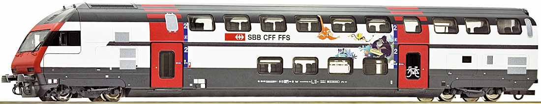 SBB Doppelstock-Steuerwagen Bt IC2000 Ausführung mit großen Velosignets Mit Funktionsdecoder für Lichtwechsel (weiss/rot) sowohl für Analog- als auch Digitalbetrieb Gleichstrom |