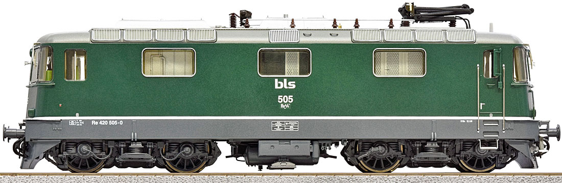 BLS Re 420 505-0 1. Bauserie der Re 4/4 II Ehemalige SBB-Lokomotive. Im Digitalbetrieb mit einzeln schaltbarem Spitzen- oder Schlusslicht, Führerstandsbe-leuchtung und Maschinenraumbe-leuchtung Wechselstrom Digital Sound |