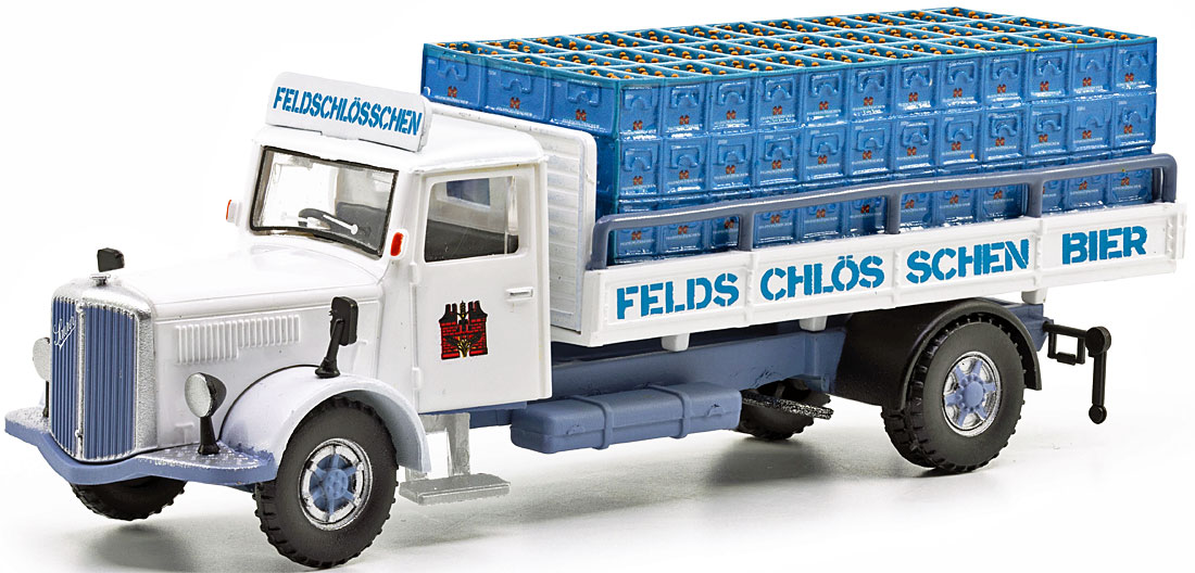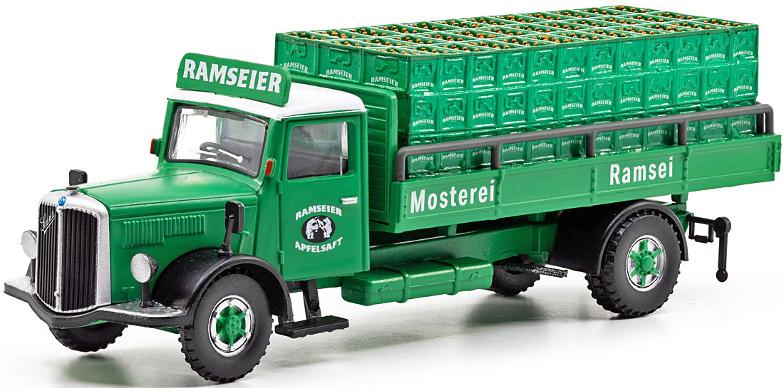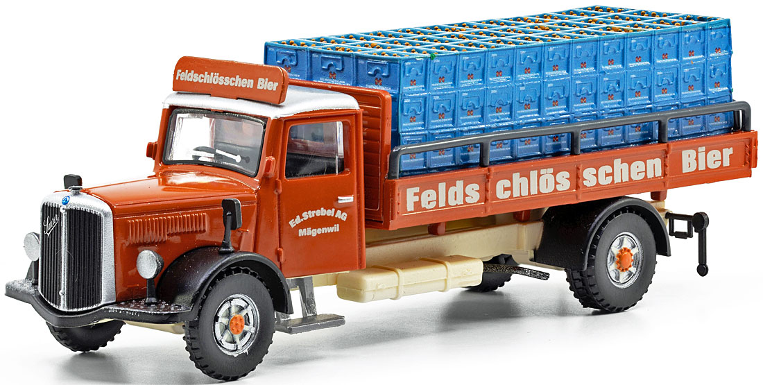 Saurer S4C Pritsche mit runden Fenstern (1963) Brauerei Farnsburger |