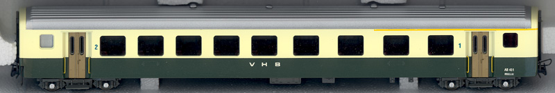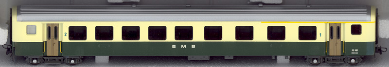 Das Modell basiert auf einem ROCO 1./2. Klasse EWII der SBB. Diese Basis ergibt einen kleinen Kompromiss bei der Fenstereinteilung, der aber nicht auffällt und aus unserer Sicht vertretbar ist. Der Personenwagen wird hergestellt in der Farbgebung grün-crème (1968 bis 1978). Unter den Artikelnummern 401.1 und 401.2 werden Personenwagen mit den Fahrzeugnummern 401 / 402 / oder 403 ausgeliefert |