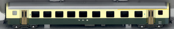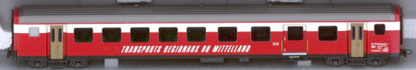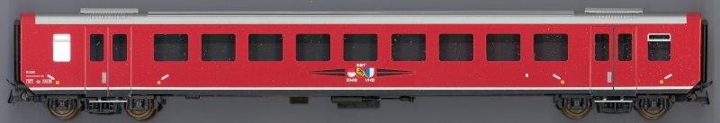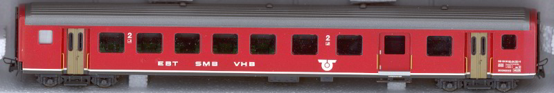 In der Zeit als bei der EBT SMB VHB keine 1. Klasse geführt wurde, wurde auch die 2. Klassebezeichnung auf den Fahrzeugen nicht aufgedruckt. Dieser Wagentyp stammt aus dieser Zeit. Er wurde dazumal zum Teil zur Bildung von dreiteiligen RBDe 4/4‘- Pendelzügen benutzt. Das Modell entspricht in der technischen Ausführung dem B 506. Ausführung mit Wappen SOLOTHURN-BERN-LUZERN. |