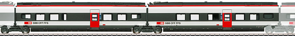 SBB Ergänzungswagen-Set 2 zum RABe 501 Giruno Ep VI 1 Mittelwagen J (A4), 1. Klasse. 1 Mittelwagen K (A3), 1. Klasse. Betriebszustand um 2018/2019. |