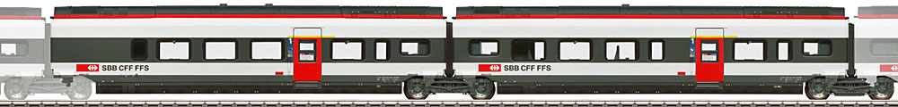 SBB Ergänzungswagen-Set 1 zum RABe 501 022 Giruno Mit neuem Zuglauf als EC 151 Frankfurt – Milano Centrale 1 Mittelwagen B (B11), 2. Klasse, mit Stromabnehmer. 1 Mittelwagen C (B10), 2. Klasse. Betriebszustand um 2024. Alle Wagen mit serienmässig eingebauter LED Beleuchtung |