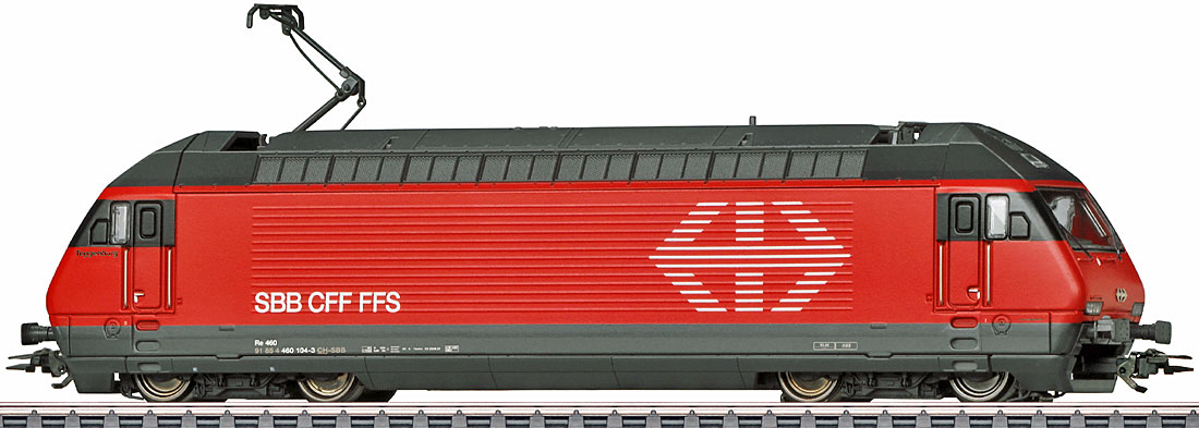 SBB Re 460 104-1 Lokname Toggenburg Neutrale feuerrote Grundfarbgebung. Ausführung mit erhabenem Stirnsignet. Betriebszustand ab 2025. Mit Digital-Decoder mfx+ und umfangreichen Geräuschfunktionen. Geregelter Hochleistungsantrieb zentral eingebaut. 4 Achsen angetrieben. Haftreifen. Fahrtrichtungsabhängig wechselndes Dreilicht-Spitzensignal und 1 weissen Schlusslicht konventionell in Betrieb, digital schaltbar. Schweizer Lichtwechsel und Lichtwechsel weiss/rot digital schaltbar. Spitzensignal an Lokseite 2 und 1 jeweils separat digital abschaltbar. Fernscheinwerfer digital schaltbar. Führerstandbeleuchtung digital schaltbar. Warnsignal und Fahrberechtigungssignal digital schaltbar. Beleuchtung mit wartungsfreien warmweissen und roten Leuchtdioden (LED). Mit Pufferspeicher. Filigrane Einholm-Stromabnehmer. Angesetzte Griffstangen aus Metall. |