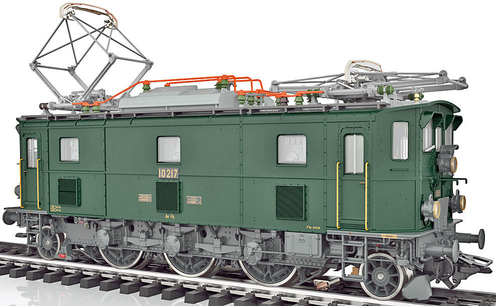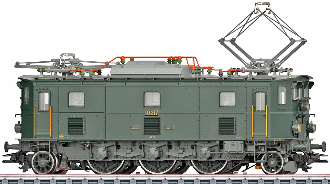 SBB Cargo Ae 610 519-1 mit Kantonswappen Giubiasco. Betriebszustand ab 2005 Mit Digital-Decoder mfx+ und umfangreichen Geräuschfunktionen. Geregelter Hochleistungsantrieb mit Schwungmasse zentral eingebaut. Je zwei Achsen in beiden Drehgestellen angetrieben. Haftreifen. Fahrtrichtungsabhängig wechselndes Dreilicht-Spitzensignal und ein weißes Schlusslicht (Schweizer Lichtwechsel) konventionell in Betrieb, digital schaltbar. Weitere separat schaltbare Lichtfunktionen: Umschalten auf ein rotes Schlusslicht, umschalten auf zwei rote Schlusslichter, umschalten auf Warnsignal und Rangierlicht. Führerstands- und Maschinenraumbeleuchtung separat digital schaltbar. Beleuchtung mit wartungsfreien warmweissen und roten Leuchtdioden (LED). Mit Pufferspeicher. Viele angesetzte Details wie Griffstangen aus Metall. Kurzkupplungskinematik. Geschlossene Blenden für den Schienenräumer liegen als separat ansteckbare Teile bei. Länge über Puffer 21 cm |