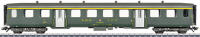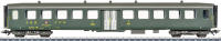 SBB Leichtstahlwagen 1. Klasse mit vierflügeligen Türen und zwei Einstiegen je Seite. Farbgebung Tannengrün. Betriebszustand um 1990. Modell: Wagen in tannengrüner Farbgebung und mit Faltenbalg-Ausrüstung entsprechend der Ursprungs-Ausführung. Vorbereitet für Stromführende Kupplungsdeichseln 7319 oder Stromführende trennbare Kurzkupplungen 72020/72021 und Innenbeleuchtung 73400/73401 oder 73410/73411. Länge über Puffer ca. 26 cm.