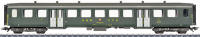 SBB Leichtstahlwagen 2. Klasse mit zweimal zweiflügeligen Türen und Mitteleinstieg. Farbgebung Tannengrün. Betriebszustand um 1990.