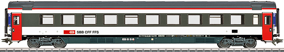 SBB Ergänzungswagen-Set 2 zum RABe 501 022 Giruno Mit neuem Zuglauf als EC 151 Frankfurt – Milano Centrale 1 Mittelwagen D (B9), 2. Klasse, mit Stromabnehmer. 1 Mittelwagen E (B8), 2. Klasse. Betriebszustand um 2024 Alle Wagen mit serienmässig eingebauter LED Beleuchtung |
