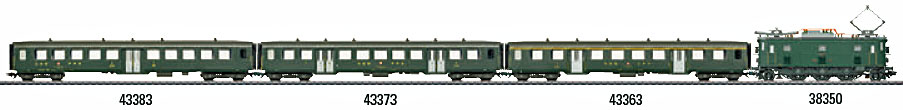 Österreich vorgesehen. Modell: 7-teilige Grundgarnitur. Restaurantwagen G und die beiden links und rechts angeordneten Mittelwagen F und H sind über die Jakobs-Drehgestelle fest miteinander gekuppelt. Mit Digital-Decoder mfx+ und umfangreichen Geräusch- und Lichtfunktionen. Geregelter Hochleistungs-antrieb mit Schwungmasse im Restaurantwagen zentral eingebaut. Alle 4 Achsen in beiden Jakobs-Drehgestellen links und rechts des Restaurantwagens über Kardan angetrieben. Haftreifen. Führerstände der Endwagen mit Inneneinrichtung. Fahrtrichtungsabhängige Stromversorgung über den jeweils vorderen Endwagen. Kulissenführung in den Jakobs-Drehgestellen Fahrtrichtungsabhängig wechselndes Dreilicht-Spitzensignal und zwei rote Schlusslichter, konventionell in Betrieb, digital schaltbar. Umschaltbar auf ein weisses Schlusslicht Schweizer Lichtwechsel. Weitere separat schaltbare Lichtfunktionen. Serienmässig eingebaute Innenbeleuchtung. Innenbeleuchtung wird versorgt über die durchgehende elektrische Verbindung des ganzen Zuges. Zusätzlich Führerstand- und Fahrpult-Beleuchtung jeweils separat digital schaltbar. Gesamte Beleuchtung mit wartungsfreien warmweissen und roten Leuchtdioden (LED). Einholmstromabnehmer auf den Mittelwagen D, F und H jeweils als Digital-Funktion separat heb- und senkbar. Massstäbliche Nachbildung. Befahrbarer Mindestradius 360 mm. Länge der Grundgarnitur ca. 152 cm. Auf einen Blick: Serienmässig eingebaute LED-Innenbeleuchtung Führerstand- und Fahrpult-Beleuchtung digital schaltbar Zug-Nummer RABe 501 004 |