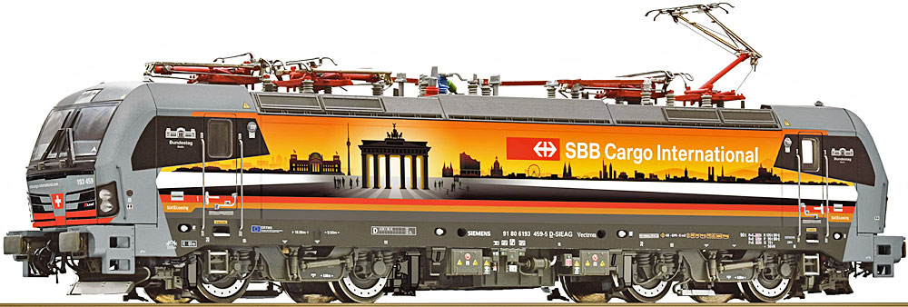 SBB Cargo Vectron BR 193 053-6 Erstmals mit neu gestaltetem Dach entsprechend den SBB Cargo Lokomotiven Mit neuer Ausführung des Schienenräumers und der Drehgestellblenden Im Digitalbetrieb mit schaltbarem Fernlicht und einzeln schaltbarem Spitzen- oder Schlusslicht und Führerstandsbeleuchtung Gleichstrom analog |