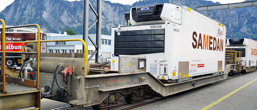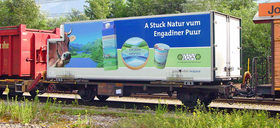 RhB Sb-v 7727 mit Container Migros WB002 |