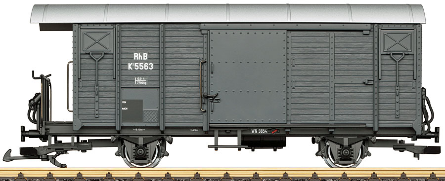 RhB gedeckter Güterwagen. Grau lackierte K 1 mit der Nummer 5563. Dieser Wagen ist heute noch im Einsatz in den historischen Planzügen mit dem Krokodil |
