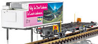 MGB HGe 4/4 II 3 DOM Mitarbeiterwerbung mit Sound Matterhorn-Gotthard-Bahn MGB, wie sie heute noch im Einsatz ist. Originalgetreue Farbgebung und Beschriftung gemäss der Epoche VI. Sonderlackierung mit zwei unterschiedlichen Mitarbeiterwerbungen auf den Seitenwänden der Maschine. Alle 4 Radsätze und zwei Traktionszahnräder von zwei leistungsstarken kugelgelagerten Motoren angetrieben. Ausgerüstet mit einem mfx/DCC-Decoder mit vielen Licht- und Soundfunktionen. Dachstromabnehmer motorisch angetrieben, digital schaltbar. Länge über Puffer 67 cm |