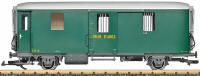 RhB Gepäckwagen Modell eines Gepäckwagens der RhB, der vor einigen Jahren mit einem Stromabnehmer ausgerüstet wurde, bei dem der Stromabnehmer aber jetzt abgebaut wurde. Mit zusätzlichem Kasten auf dem Dach, der beim Original erst vor kurzem montiert wurde. Originalgetreue Farbgebung und Beschriftung der Epoche VI. Türen zum Öffnen. Metallradsätze. Länge über Puffer 62 cm. |