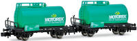 CH-WASCO, 2-teilig Set 2-achser Kesselwagen MOTOREX türkisfarbene Farbgebung |
