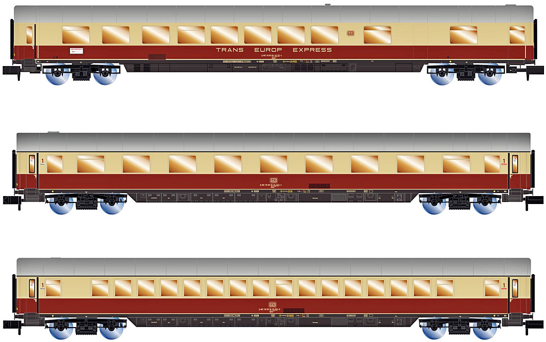 AKE, 3-teilig Set Rheingold Set 2/2 bestehend aus 1 x Speisewagen ARmh217 1. Klasse Avmz 1 x Wagen Apmz |