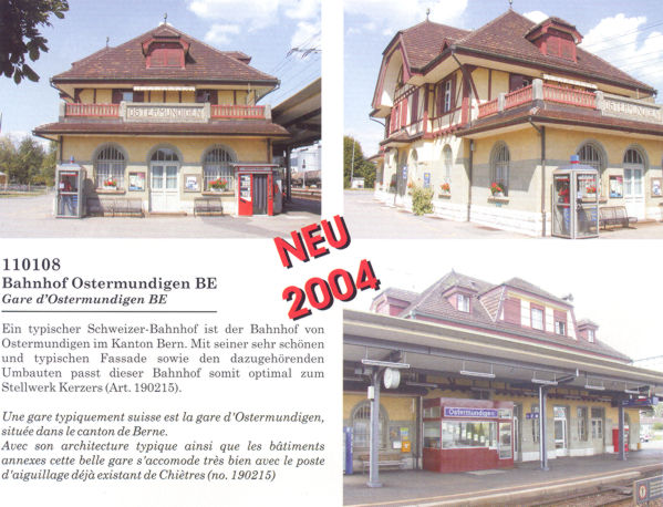 Moderner Schweizer Bahnhof (ex Horrem) mit Schweizer Beschriftungsbilder |